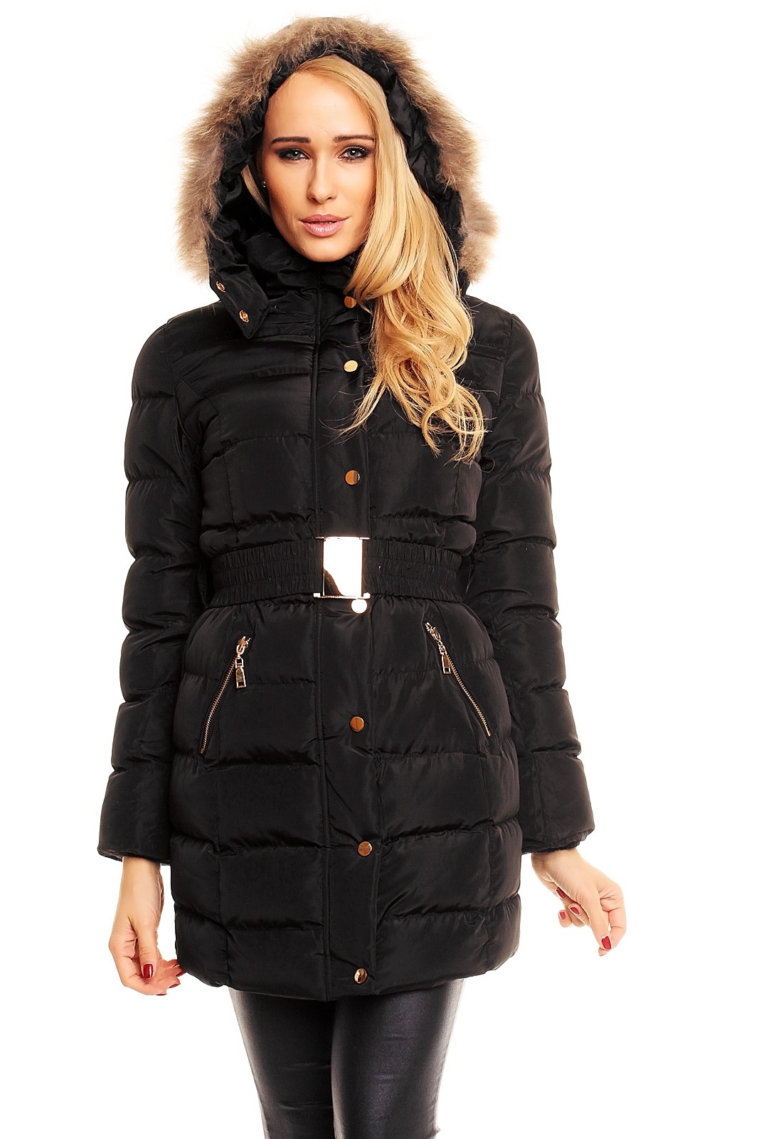 Černý, poměrně krátký kabát ozdobený spoustou decentních, ale přesto neodolatelně rafinovaných detailů, je velmi dobře kombinovatelný například s úzkými tmavými riflemi, nebo (jste-li otužilá) i se sexy legínami. Výhodou tohoto modelu je hluboká, odepínatelná kapuce zdobená trendy umělou kožešinou – v opravdové studené polízanici je takovýto prvek k nezaplacení.